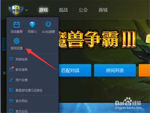 首先打開魔獸爭霸官方對(duì)戰(zhàn)平臺(tái),找到“游戲設(shè)置”和“網(wǎng)易CC”