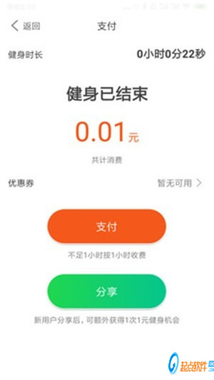 健身結(jié)束后,計(jì)算健身費(fèi)用,免除辦卡煩惱,跑兩步app讓用戶(hù)無(wú)憂(yōu)健身。