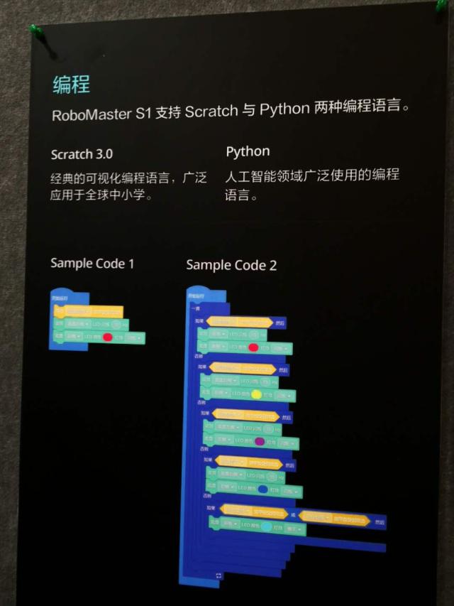 據(jù)介紹其采用的Scratch 3.0 和 Python 兩種編程語言。Scratch 3.0并不像C語言的代碼這么復(fù)雜,而是“可視化編程語言”,通過如果……就……的邏輯,小學(xué)生也可以學(xué)習(xí)并且被已經(jīng)廣泛應(yīng)用于全球中小學(xué)機(jī)器人教育中。Python則適用于具備一定編程技術(shù)基礎(chǔ)的用戶, 是當(dāng)下人工智能開發(fā)領(lǐng)域應(yīng)用非常廣泛的編程語言。