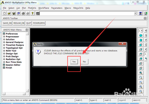 當(dāng)我們發(fā)生了操作失誤時,Ansys是沒有撤回操作按鈕的,我們這時候就可以利用導(dǎo)入之前保存的命令流來實現(xiàn)回到上一步了。首先依次單擊菜單欄的【File】——【Clear&star New...】選項。如下圖所示。