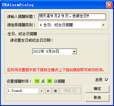 提醒功能是URNotes意唯桌面便簽的一項很重要的功能,