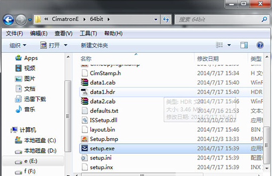 安裝破解教程1、下載解壓安裝包,運(yùn)行Cimatron E12-64位正式版\CimatronE\64bit目錄下的文件“setup.exe”