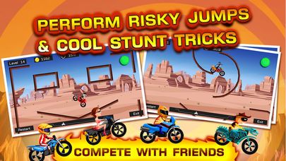 翻滾飛車無限金幣版是一款賽車主題的冒險競技類手機游戲,玩家需要在游戲中駕駛自己的摩托車表演高超的特技來克服關(guān)卡的一道道坎,酷炫帥氣。這里有個小技巧推薦給大家,翻滾飛車破解版游戲需要玩家一開始控制好自己的速度,在恰當(dāng)?shù)牡胤绞褂煤侠淼乃俣?,才能夠更好地越過關(guān)卡的障礙物,一步步過關(guān)斬將,最終到達(dá)目的地,考驗?zāi)愕牟僮鞯臅r候到了,快來下載吧!