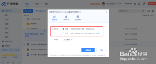 2、這時來到分享文件的頁面,這里有3種分享形式:鏈接分享,發(fā)給好友,發(fā)到郵箱,這里我選擇的是鏈接分享,分享形式有2種:加密和公開,這里我以選擇加密為例。