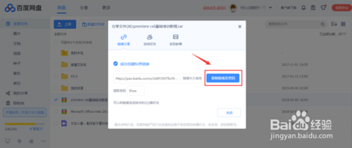 4、這時候頁面會顯示成功創(chuàng)建私密鏈接,這里我們再點擊復制鏈接和密碼。PS:如果是公開分享,這里就不會顯示密碼