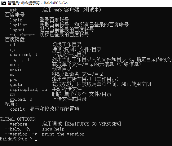 4、以管理員的身份運行cmd,命令行輸入BaiduPCS-Go