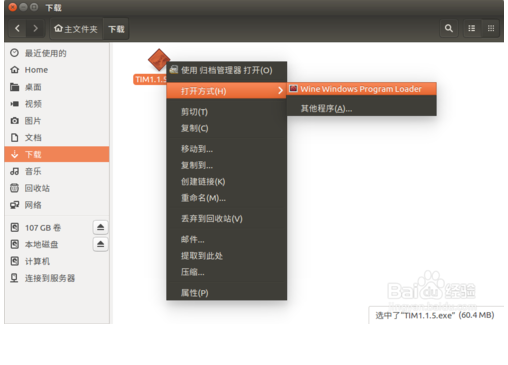 6.當(dāng)你完成安裝之后,找到exe后綴的Windows安裝包,右擊它,選擇其他程序打開,選擇wine