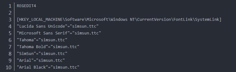 第二步:將所有字體的值替換為該字體。創(chuàng)建一個(gè)腳本文件font.reg。