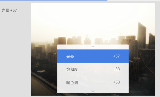 工具分別提供了加減光、曝光、色溫、飽和度選項。