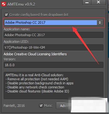 8.注冊機(jī)里面第一個選項(xiàng)卡點(diǎn)擊下拉找到 Adobe Photoshop CC 2018選中它。選中后界面是這樣的: