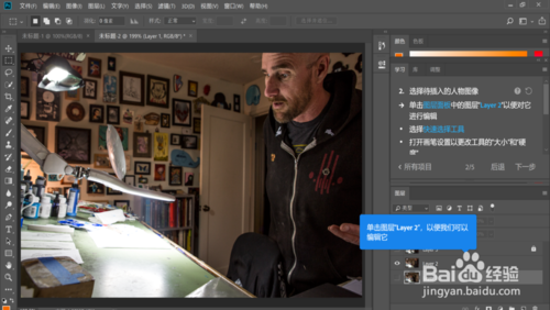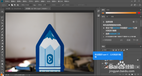 首先先打開兩張你需要編輯的圖片,單擊圖層layer2以便于我們編輯它。