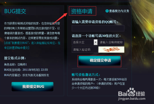 進(jìn)入試煉之地體驗服申請界面,下拉頁面,或者點擊申請體驗服資格按鈕,會看到申請界面,這里你需要至少有一個區(qū)達(dá)到三十級以上,,輸入qq,密碼,大區(qū)以及角色名字。最后點擊申請。系統(tǒng)每兩周激活一次,每次放前500合格玩家。