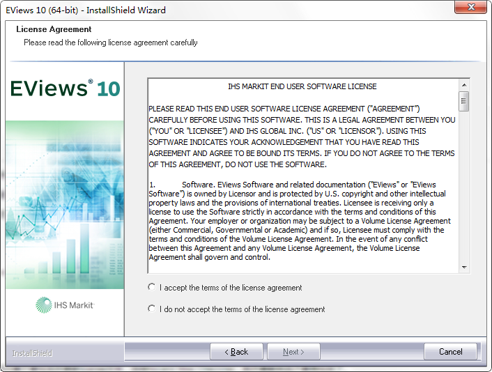 2、開始安裝后進(jìn)入到EViews的安裝協(xié)議界面,這個界面里我們需要了解協(xié)議并同意該協(xié)議內(nèi)容才可繼續(xù)安裝。同意協(xié)議請選擇“I accept the..”并單擊【Next】。