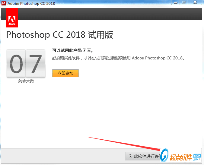 3、然后軟件就出現(xiàn)一個試用7天的界面,說明我們軟件還沒有破解,關(guān)閉軟件。下面我們開始破解。