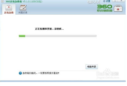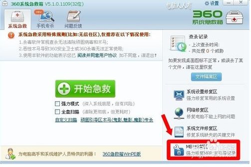 2.如果已經(jīng)進入操作系統(tǒng),且還安裝有360安全衛(wèi)士,可以這樣調(diào)出來(隱藏得比較深):360安全衛(wèi)士→木馬查殺→安全工具箱→系統(tǒng)急救箱。