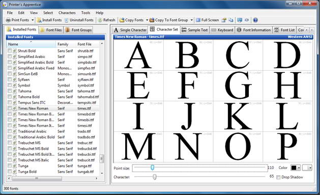 這個(gè)時(shí)候你就需要使用 Printers Apprentice,因?yàn)樗梢宰屇爿p輕松松的安裝移除、管理、觀看所需要使用的字型,再也不會(huì)認(rèn)為安裝字型是一件麻煩事了!它會(huì)自動(dòng)搜尋硬盤中所有安 裝的字型 (支持 TrueType 及 Adobe Type 1 (ATM) 的字型檔案),而在程序的執(zhí)行窗口中,右邊是一個(gè)字型顯示及其它功能的展示區(qū),左邊是字型名稱及安裝、反安裝的功能區(qū)。