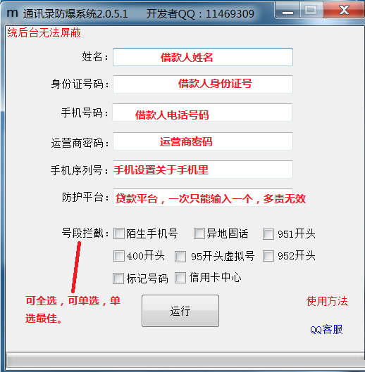 被動防爆原理:被動的原理就是可以從中途阻斷他,不管催收撥打你哪個聯(lián)系人,電話號碼也不會例外是電信、移動、聯(lián)通。那么可以從運營商方面下手解決這個問題,每個運營商都有自己的命令接口,比如我們平時回復(fù)短息辦理套餐這種方式就是調(diào)用的命令接口,當然這種接口也可以做到攔截電話,只不過是隱藏了功能而已。被動防護的原理主要是“標記號碼”,通過錄入的信息后臺智能分辨號碼來源,并迅速標記為詐騙電話,后臺系統(tǒng)再將這些標記號碼向運營商舉報攔截,從而達到向大家說的防爆攔截效果!
