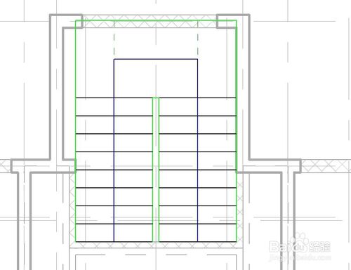 定位線繪制完成之后,雙擊esc鍵退出參照平面繪制模式,開始繪制樓梯,點擊梯段/直線,在視圖中捕捉定位線繪制,繪制完成的樓梯平面如下圖。