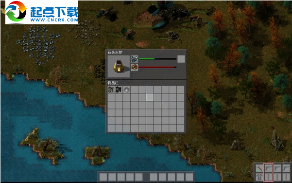 石爐是一種設(shè)施,制好會出現(xiàn)在屏幕下方的設(shè)施欄里,選取它放置到地面上(顯示綠色的位置才能放)。砍伐木頭或采集一些煤,點擊地上的石爐出現(xiàn)熔爐工作界面,有燃料和材料兩種格子,將煤或木頭放到燃料格,鐵礦放入原料格,開始熔煉。