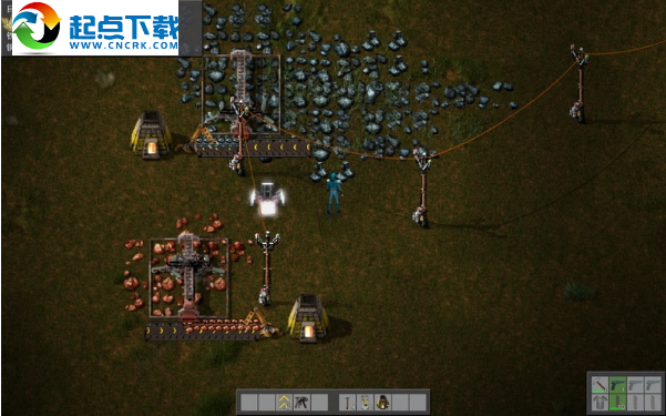 接下來造雷達,需要鐵板和銅板,這就意味著要開采鐵礦和銅礦,電能采掘機要比熱能采掘機快得多。在附近的鐵礦和銅礦上布置好生產(chǎn)線,再用電線桿將電力輸送過去,給石爐加好煤,可以生產(chǎn)出鐵板和銅板了。