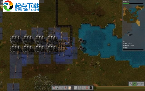 打開制作界面,看到可制造的東西多了起來,包括管道、鍋爐、蒸汽機、路燈、供水泵、電路板、銅線、護甲等等。地上已經(jīng)放好一部蒸汽機,現(xiàn)在制作一只供水泵,將它放到湖邊,和蒸汽機設(shè)備連接起來。