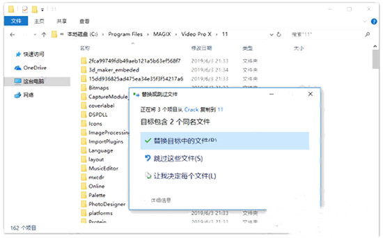 1、安裝完成后,切記不要運(yùn)行軟件,將Crack文件夾內(nèi)的所有文件復(fù)制到軟件安裝目錄下替換;默認(rèn)路徑“C:\Program Files\MAGIX\Video Pro X\11”