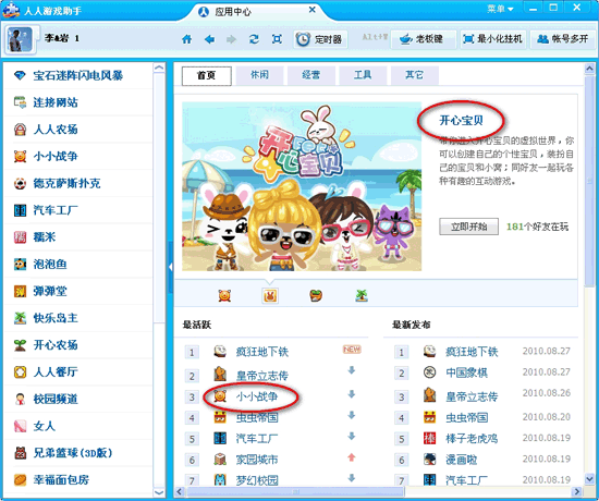人人游戲大廳 V2.3 綠色免費版 人人游戲大廳(原人人游戲助手)是人人網推出的一款游戲輔助軟件。支持多帳號同時登錄、設置游戲定時提醒,方便擁有小號的專業(yè)玩家掛機升級。農場類、經營類、寵物類、益智類等上萬款游戲,任你選擇、點擊即玩!是大眾網民的必備娛樂軟件。
