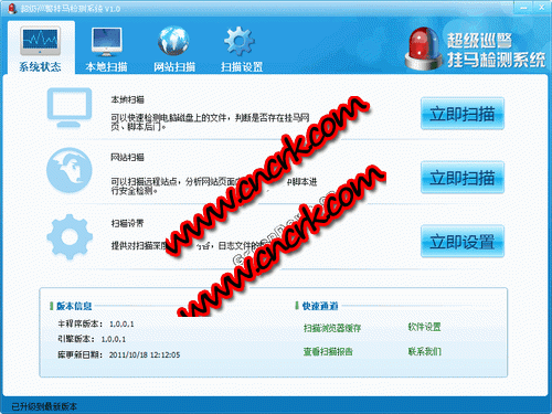 超級巡警掛馬檢測系統(tǒng) V1.0 簡體中文綠色免費版 超級巡警掛馬檢測系統(tǒng)是千云旗下的數(shù)據(jù)安全實驗室出品的一款免費網站掛馬檢測軟件。此款軟件專為檢查web server被入侵種植腳本木馬和網頁被嵌入的惡意鏈接而設計。
