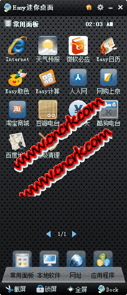 簡單迷你桌面,是提供桌面快捷方式、網(wǎng)址收藏夾、個人電腦工具箱的桌面程序。操作方便、免費(fèi)、安全、快捷、穩(wěn)定、易用是easy迷你桌面的服務(wù)宗旨。