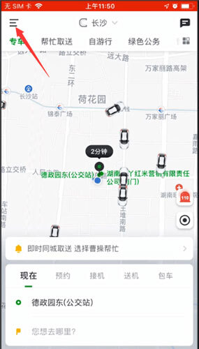 1. 開(kāi)啟曹操出行應(yīng)用,點(diǎn)擊屏幕左上方的圖標(biāo)。