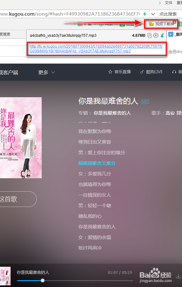 開始在360瀏覽器試聽歌曲,這個時候在360瀏覽器上面的應(yīng)用插件【視頻下載神器】中會有一個媒體提示,點(diǎn)擊開就看到音樂的下載地址。(插件 視頻下載神器可以在360瀏覽器的應(yīng)用中心找到安裝就可以了。)