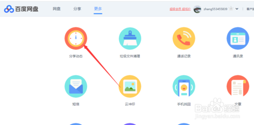 然后在新打開(kāi)的頁(yè)面中,顯示許多百度網(wǎng)盤(pán)的模塊,這里點(diǎn)擊第一個(gè)分享動(dòng)態(tài)模塊,如下圖所示。