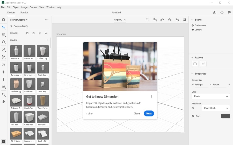 獲取數(shù)百個(gè)已針對(duì)Dimension進(jìn)行了優(yōu)化的免費(fèi)Adobe Stock資產(chǎn),可在應(yīng)用內(nèi)部訪問。使用數(shù)千種3D模型,燈光和材料自定義場(chǎng)景。
