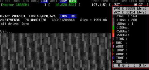 輸入MHDD回車確認,這個mhdd不區(qū)別大小寫。即可進入MHDD掃描工具的使用。