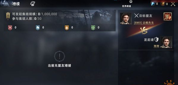 發(fā)起集結(jié)的領(lǐng)主打開(kāi)集結(jié)面板后,可查看參與集結(jié)盟友的人數(shù)、盟友集結(jié)兵力等信息。也可通過(guò)右下角的公告面板,編輯公告信息。
