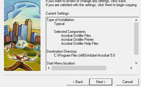 4、設(shè)置安裝的方式,第一個(gè)是典型安裝,地址是C:\Program Files (x86)\Adobe\Acrobat 5.0。勾選以后點(diǎn)擊next