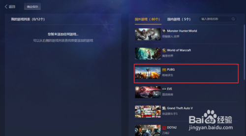 4、在右側(cè)選擇《絕地求生》點(diǎn)擊就能添加到左側(cè)位置。