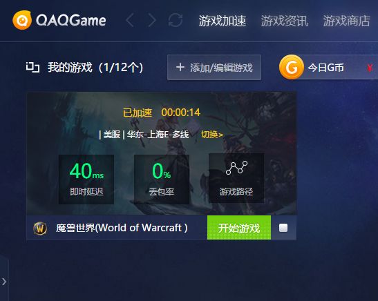 登錄成功,我們可以使用QAQGAME加速器加速好玩的網(wǎng)絡(luò)游戲了。
