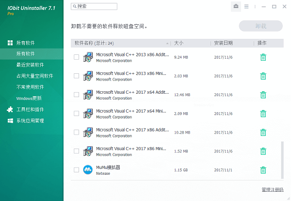 IObit Uninstaller Pro可以幫助你清理電腦內(nèi)的多余軟件和垃圾文件,是一款非常優(yōu)秀的軟件卸載工具。軟件支持強制卸載、批量卸載等功能,還可以掃描隱藏在電腦中的頑固流氓軟件,提高電腦的運行速度。