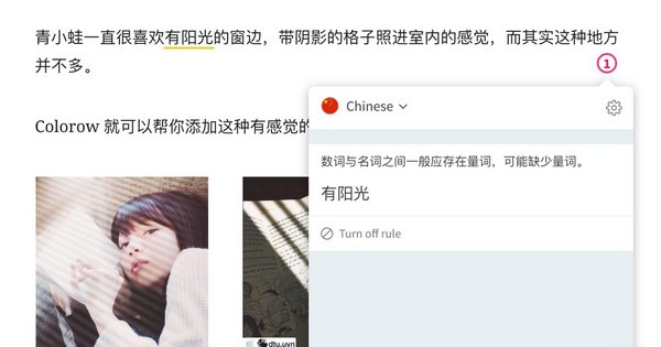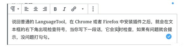 在 Chrome 或者 Firefox 中安裝插件之后,就會(huì)在文本框的右下角出現(xiàn)檢查符號(hào),當(dāng)你寫(xiě)下一段話,它會(huì)實(shí)時(shí)檢查,如果有問(wèn)題就會(huì)提示,沒(méi)問(wèn)題打勾勾。