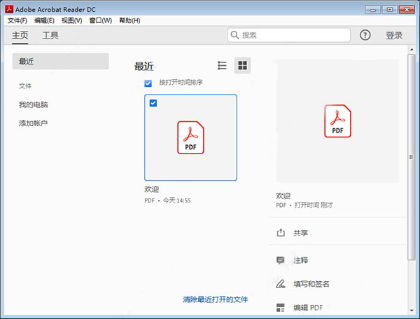 5、然后重新打開(kāi)軟件即可正常使用,說(shuō)明acrobat reader dc 2019中文免費(fèi)版成功安裝