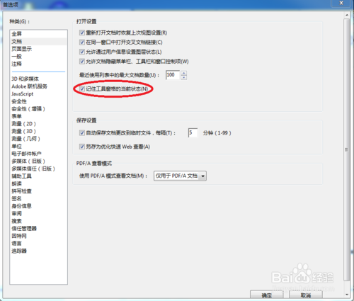 找到“選擇記住工具窗格的當(dāng)前狀態(tài)”打鉤。然后點(diǎn)擊下方的“確定”按鈕來(lái)保存設(shè)置。