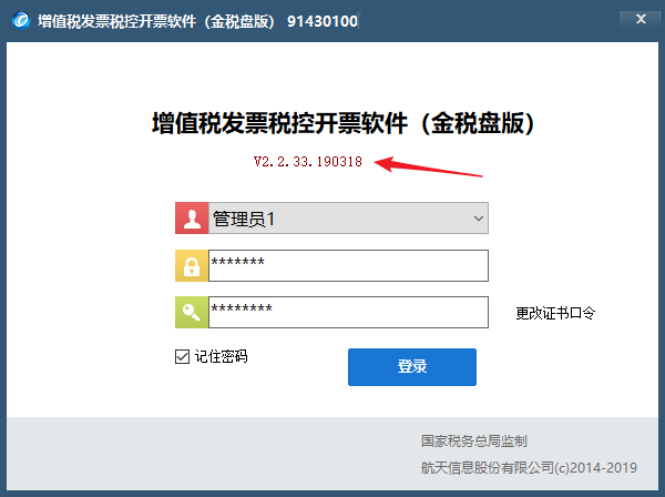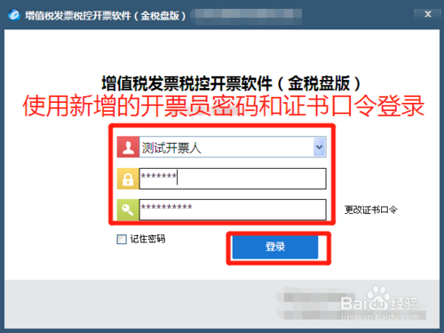 6.重新打開開票軟件,使用“測(cè)試開票人”的密碼和證書口令登錄。