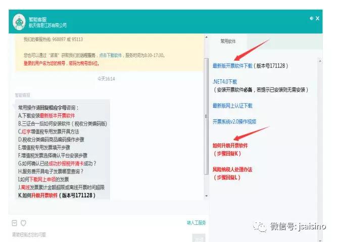 正常情況下均可升級(jí)成功,若操作失敗或者不會(huì)操作請(qǐng)及時(shí)聯(lián)系 968897/95113 電話咨詢我們喲~,在使用過程中有其他疑問,也可微信搜索關(guān)注公眾號(hào)“江蘇航天”或“jsaisino”,選擇“24h客服”咨詢。