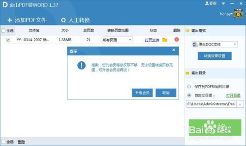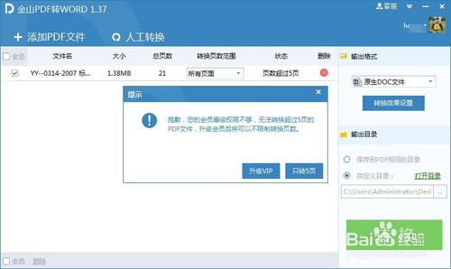 2、“轉(zhuǎn)換頁數(shù)范圍”功能只有VIP會員才能使用,意味著還是只能轉(zhuǎn)換前面5頁。