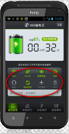 說這么多,可能你就在想,那么360省電王到底在哪些方面做到的省電功能。其實(shí),我們從省電的設(shè)置里面就可以看得出,或者從平常使用手機(jī)時(shí)可以得出,耗電的一般是手機(jī)的屏幕亮度,和CPU的使用率,外加開啟的后臺(tái)常駐軟件是耗電的最大黑手。根據(jù)設(shè)置,你就可以做到省電了。