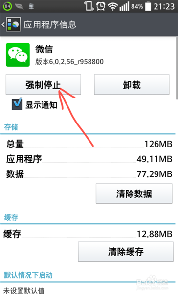 6、在應(yīng)用程序信息界面,應(yīng)該很熟悉這個(gè)界面,點(diǎn)擊:“強(qiáng)制停止”可以將此軟件關(guān)閉掉。