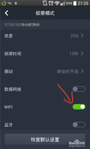 9、在360省電王極限模式下面,默認(rèn)是關(guān)閉了WIFI的,我可以自定義將WIFI打開。