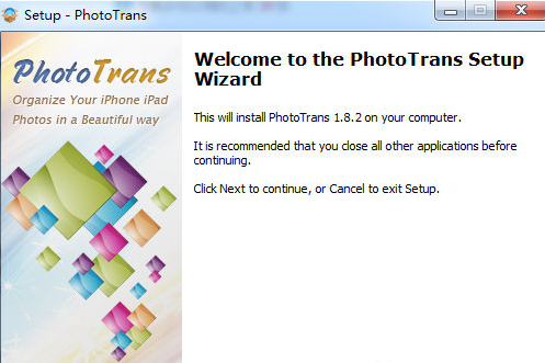 1、軟件下載解壓完成后,點(diǎn)擊phototrans-setup.exe打開(kāi)軟件安裝包,點(diǎn)擊next開(kāi)始安裝PhotoTrans軟件。2、選擇軟件安裝位置。