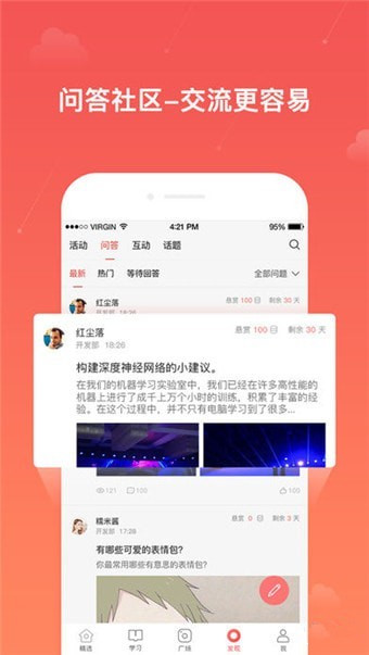 問答廣場:圍繞某一感興趣的話題進(jìn)行討論,發(fā)現(xiàn)興趣一致的人,同時幫助企業(yè)構(gòu)建基于崗位的問答庫。